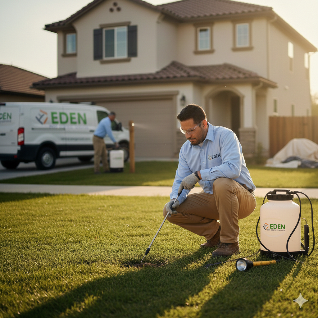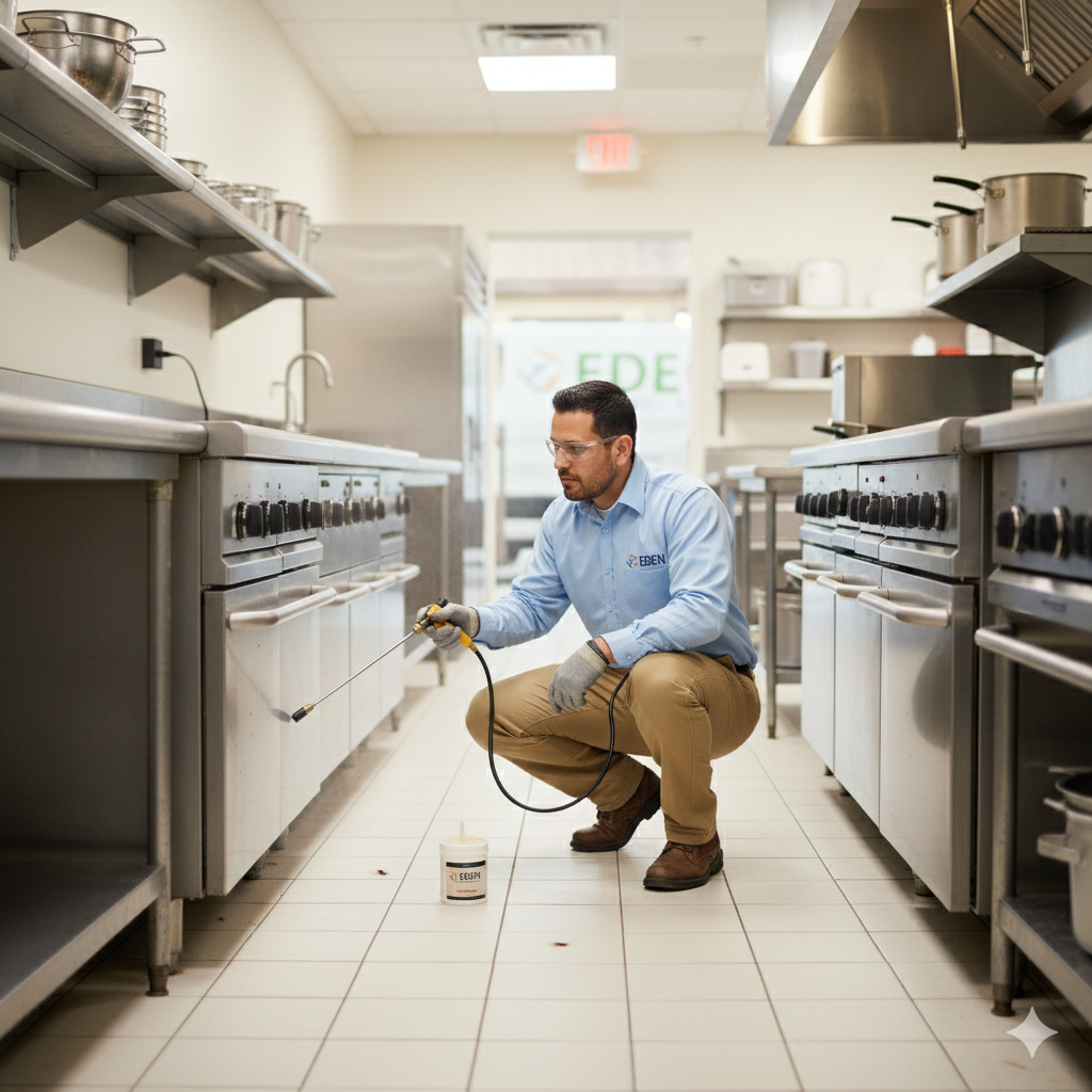 Our Solution: Integrated Pest Management (IPM) involving sanitation advice, light traps, and eco-friendly misting.